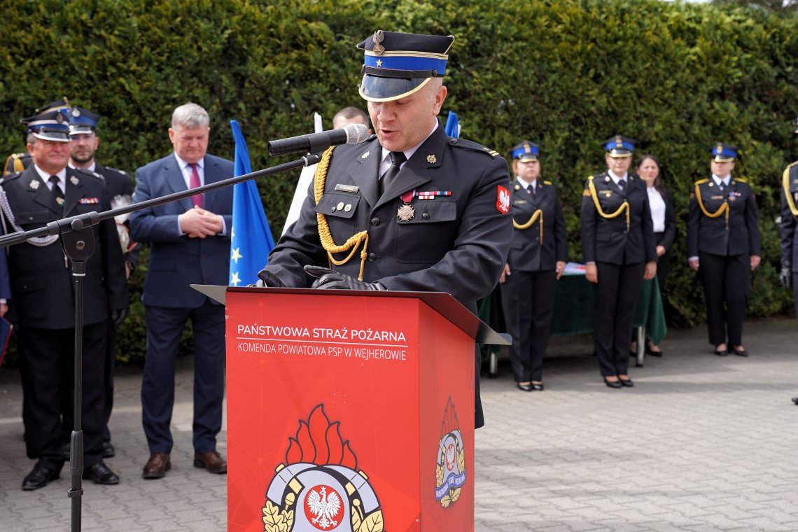 Uroczystość była okazją do uhonorowania zasłużonych funkcjonariuszy Państwowej Straży Pożarnej oraz druhów z Ochotniczych Straży Pożarnych z terenu powiatu wejherowskiego. Podczas ceremonii wręczono medale, odznaczenia oraz awanse na wyższe stopnie służbowe. Wyróżnienia te są wyrazem uznania dla odwagi, poświęcenia i profesjonalizmu, jakie strażacy wykazują w codziennej służbie na rzecz bezpieczeństwa mieszkańców. Najbardziej zasłużeni strażacy zostali również uhonorowani nagrodami Starosty Wejherowskiego.